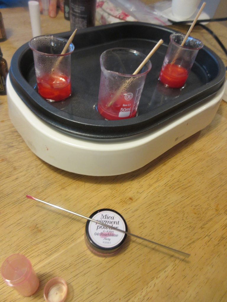 リップクリームも色を着けたり、
