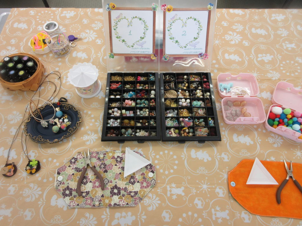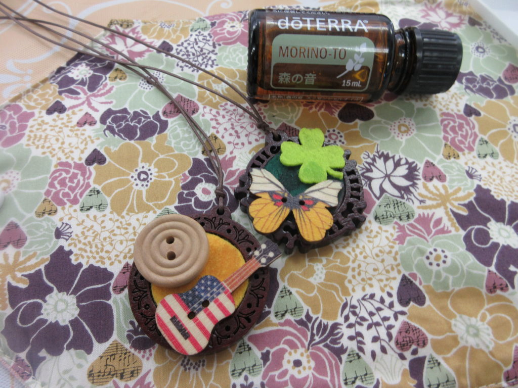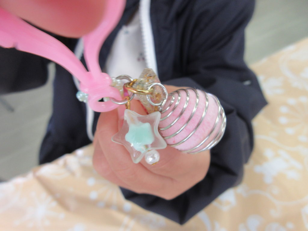 私は今回もアロマネックレスとアロマキーホルダーワークショップをしました。