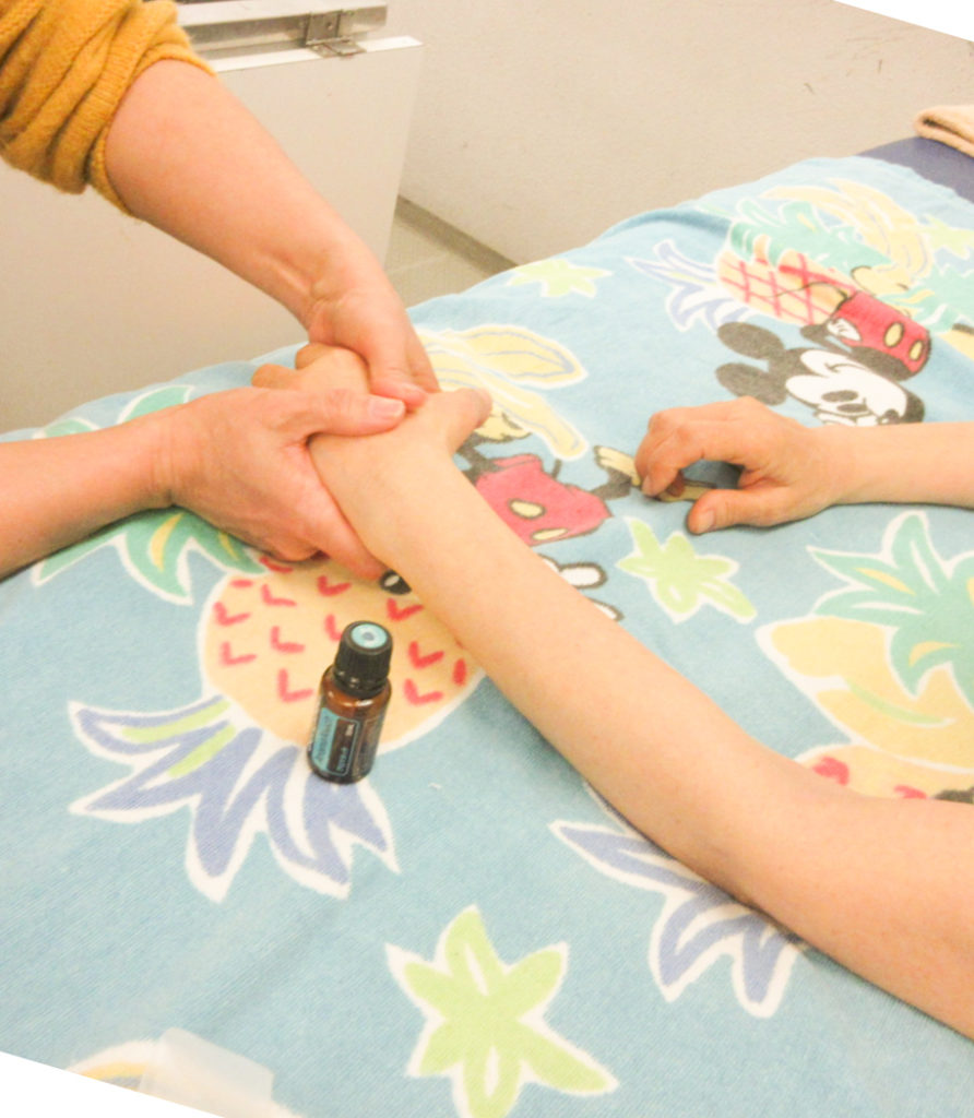 エッセンシャルオイルのお話にハンドタッチ、アロマタッチ体験も可能。