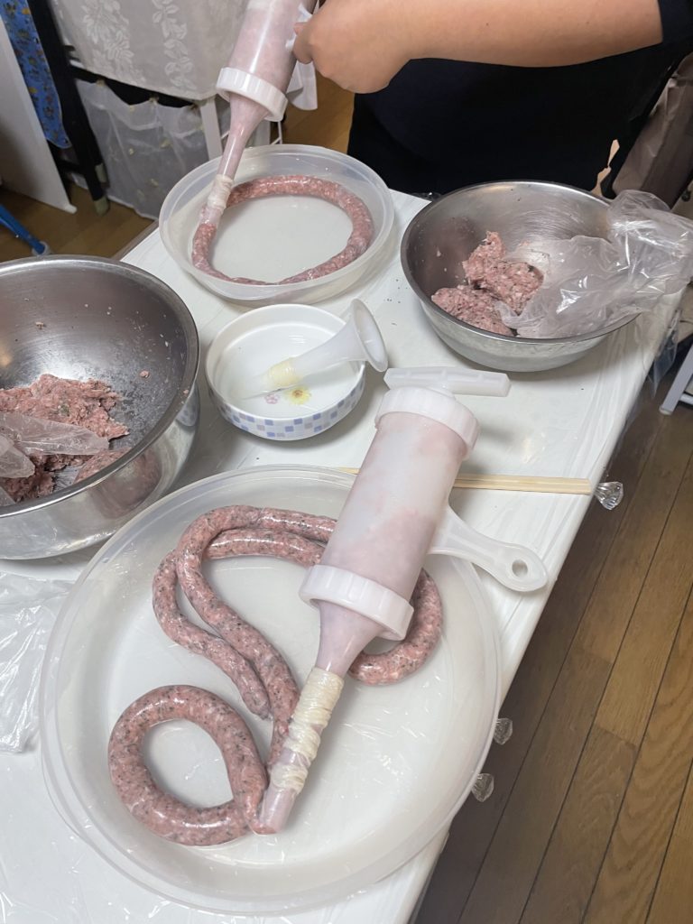 専用の絞り機でソーセージにしていきます。