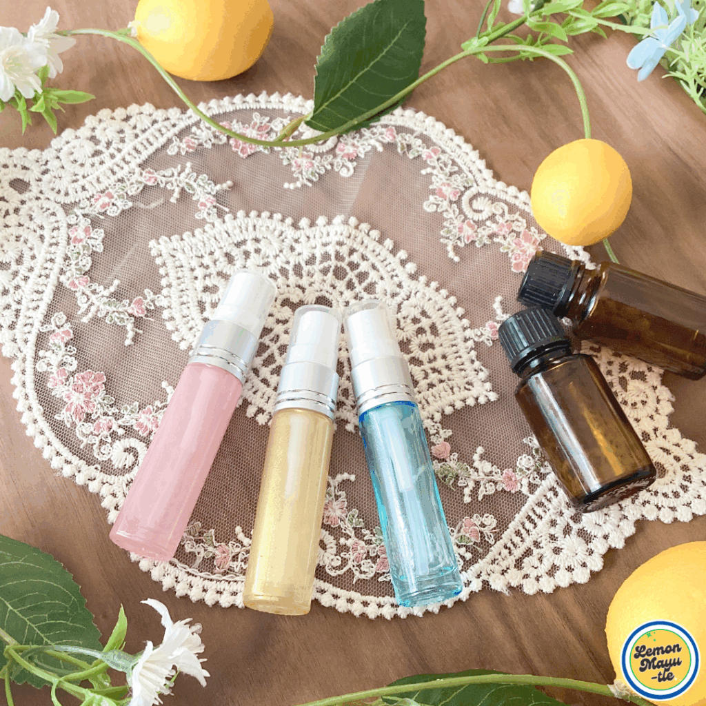 アロマスプレー、ロールオンなどエッセンシャルオイルと材料を混ぜて作れるような簡単なアロマクラフトレッスンです。